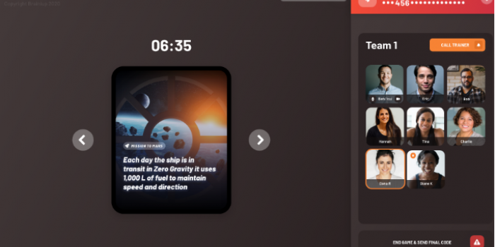 Spaceship Challenge is about having several teams prepare and plan for their mission in Space. Teams work on a tough problem where information is split between the different team members. They must leverage all their online working skills to solve a series of progressively more complex challenges. Space Challenge Virtual team building is an unusual, fun and dynamic (against the clock) group activity designed for high performing teams.